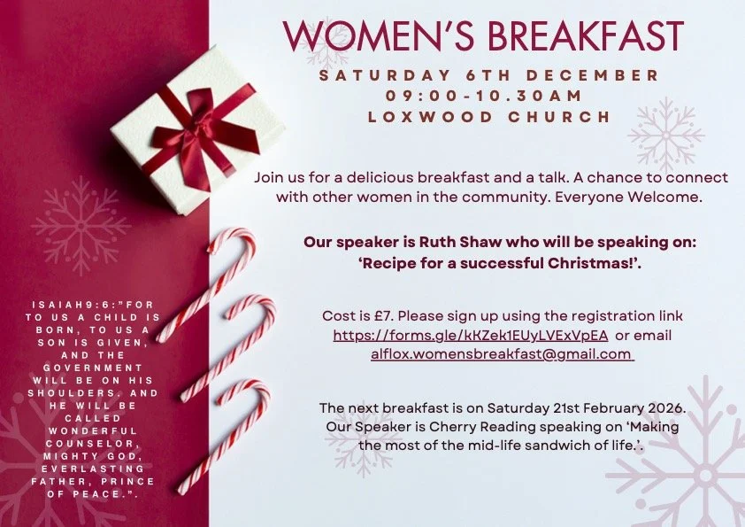 Cost is £7. Please sign up using the registration link or email alflox.womensbreakfast@gmail.com